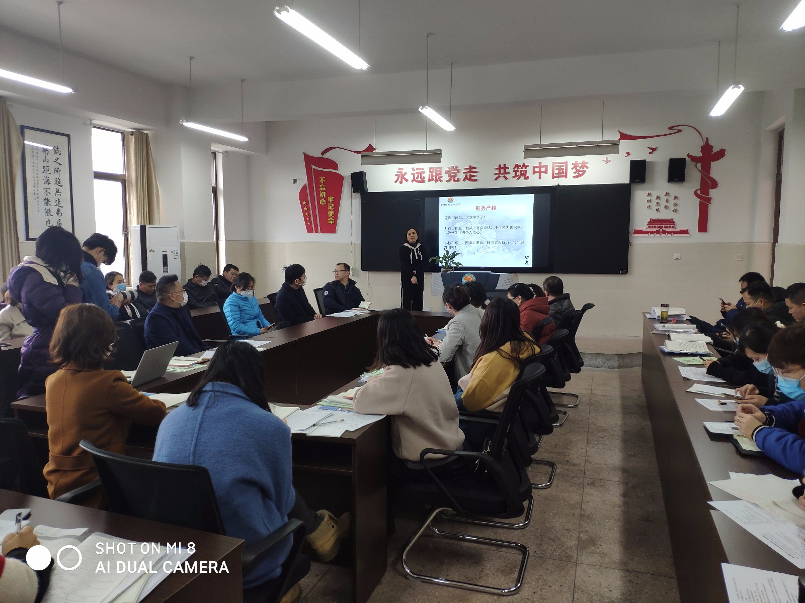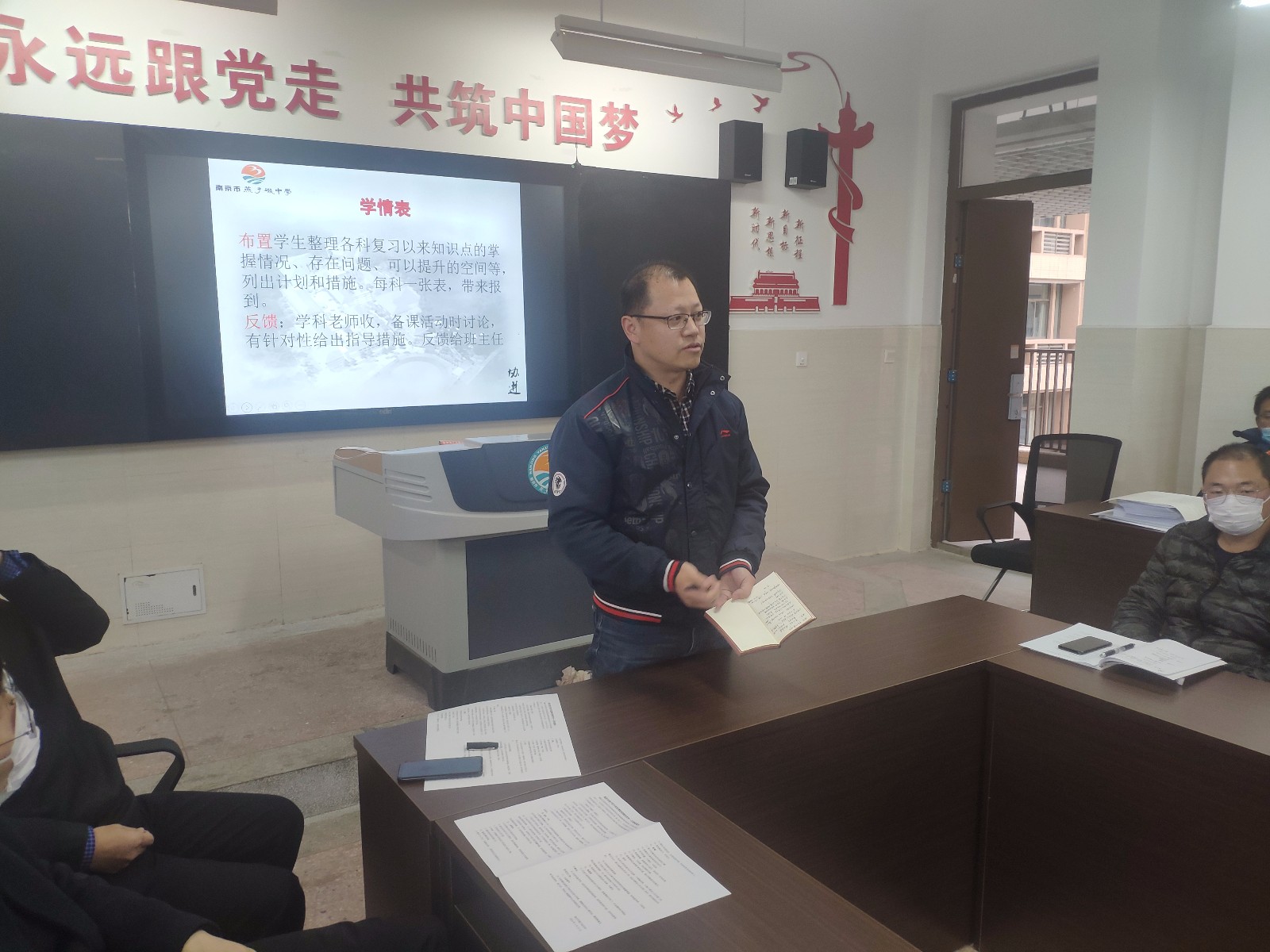 接着,钟哲然副主任交代了复课后的各项教学计划。她详细交代了南京二模、南通二模的监考、阅卷的工作安排。并就高三第二学期的课时安排、课表设置做出了详尽的解释。