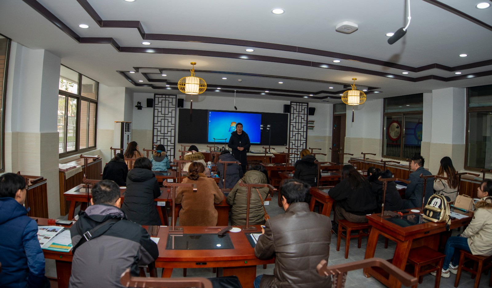 臧向军老师的讲座主题是《美术欣赏的批判性思维》。臧老师先阐释了批判性思维的定义,然后结合教学实践对批判性思维在美术鉴赏课上的重要性进行详细论述,之后向大家展示了他设计整合的网站——高中美术绘画、鉴赏、设计资源库。网站采用纯英文语言,为方便学生阅读,特意设计了鼠标移至文字上可显示中文的操作,大家纷纷赞叹资源库内容的丰富详实。网站制作是一个浩大的工程,但这对美术教学来说无疑是一个便捷的抓手。