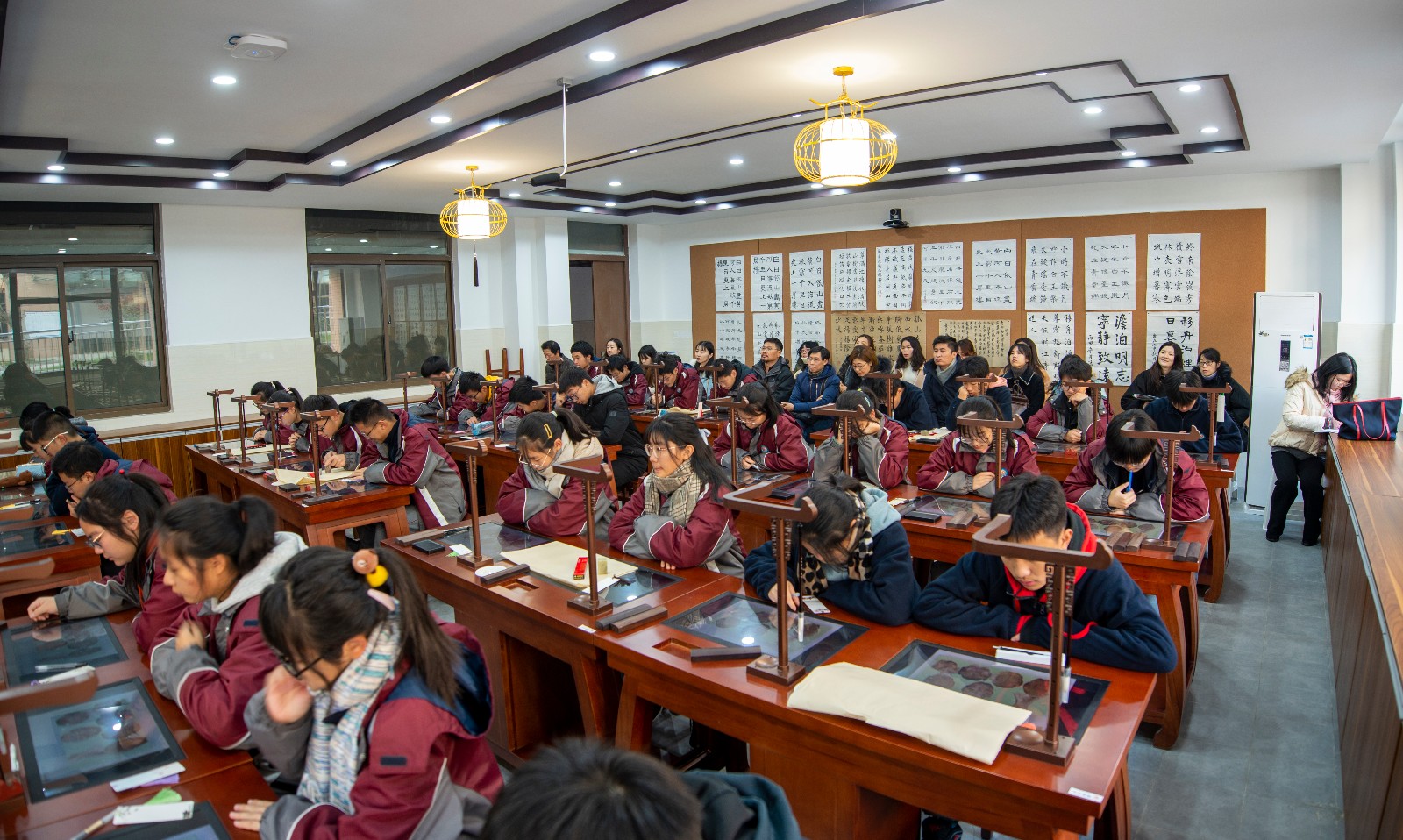 最后,李娟老师对两位老师的课及臧老师的讲座给予了充分地肯定,指出了各自的优点,并从教学设计、教学内容、教学过程等几个方面提出了宝贵的意见与具体可行的建议。南师附中丁家庄初级中学的刘璐璐老师与南外仙林的陈建军老师、刘古湘老师也分别对今天的课程进行了点评,大家在感叹我校书法课程基地先进硬件设施的同时,也为美术组的三位老师点赞,赞他们讲究教学方法和过程,注重培养学生的学习能力;赞创作环节的设计强调了创新精神,培养了学生独立解决问题的能力;赞燕中教师不断开拓、协进进取的精神。