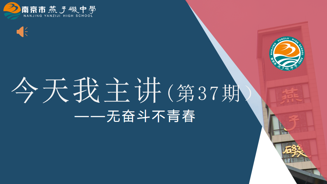 青年是整个社会力量中最积极、最有生气的力量,国家的希望在青年,民族的未来在青年。在又一个五四青年节到来之际,燕子矶中学迎来“今天我主讲”第37期——“无奋斗不青春”主题演讲,主讲人是来自高一(10)班的姚娜、高宁生两位同学。